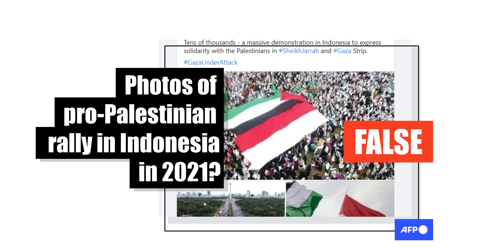 The claim, however, is false. Two of the photos were taken in December 2017, when Indonesians protested former US President Donald Trump’s decision to recognise Jerusalem as the Israeli capital. Another photo was taken during a 2016 protest against the then Jakarta governor who was accused of blasphemy.