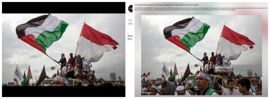 Below is a screenshot comparison of the third photo in the misleading post (L) and The Jakarta Post report (R):