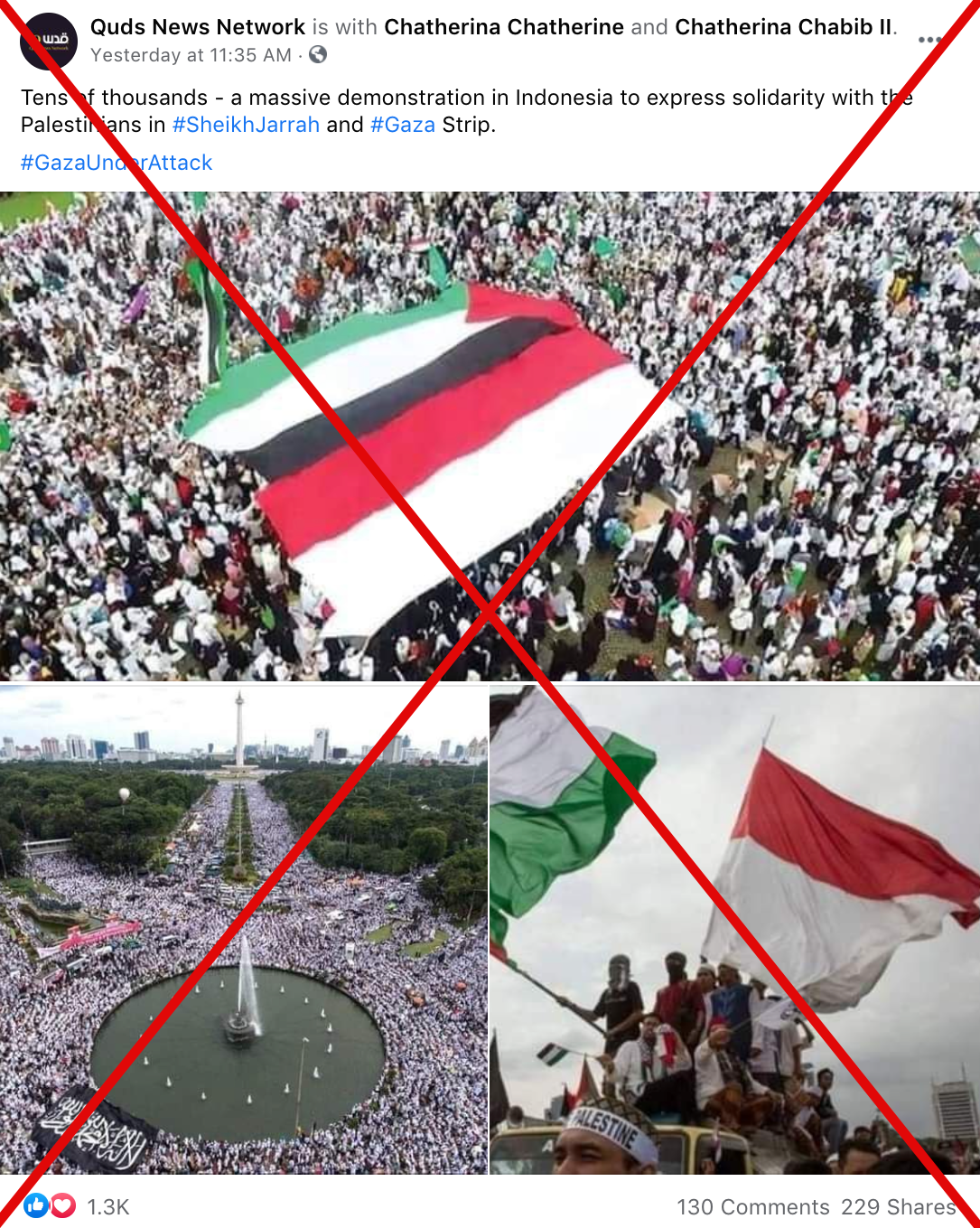 The caption reads: “Tens of thousands - a massive demonstration in Indonesia to express solidarity with the Palestinians in #SheikhJarrah and #Gaza Strip. #GazaUnderAttack”.